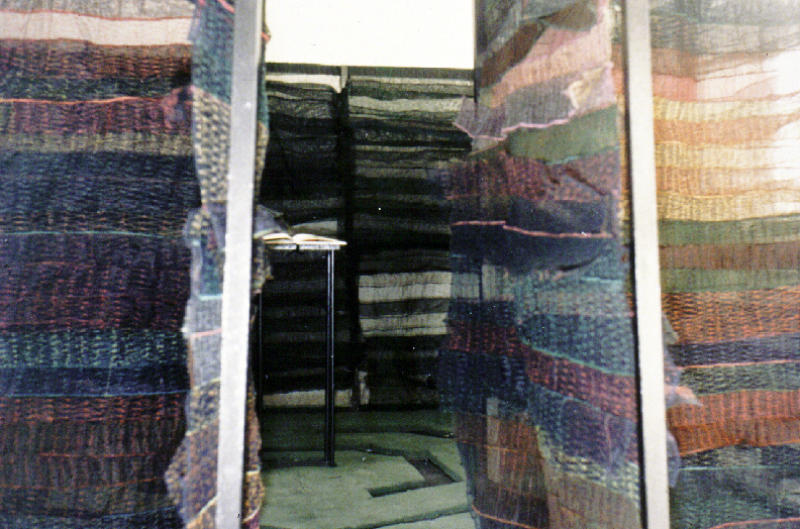 The garden consisted of a metal frame armature with an archway entrance. Screening material coated in layers of stitching became the walls. The stitched marks represented a topiary embellishment, like vines or the plants in a hedge.